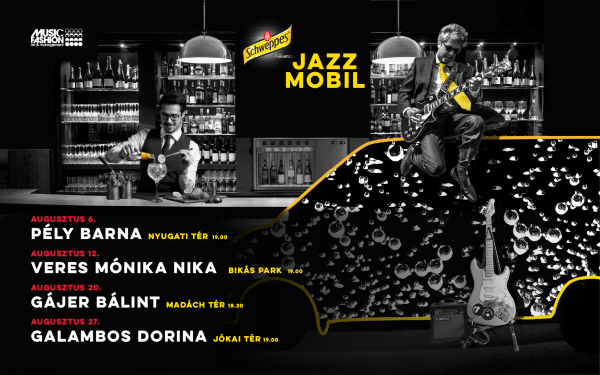 In august a live-music bus can be seen on the streets of Budapest. Inside the Schweppes JazzMobil professional musicians play along until various destinations where on some weekends famous singers join the show. Featuring the Schweppes JazzMobil free outdoor concerts can be attended with performers Pély Barna, Veres Mónika Nika, Gájer Bálint, Galambos Dorina.